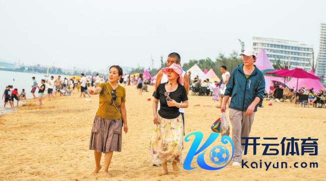 4月6日,海口荣山寮村东谈主头攒动,旅客在沙滩上不雅光。记者 石中华 摄