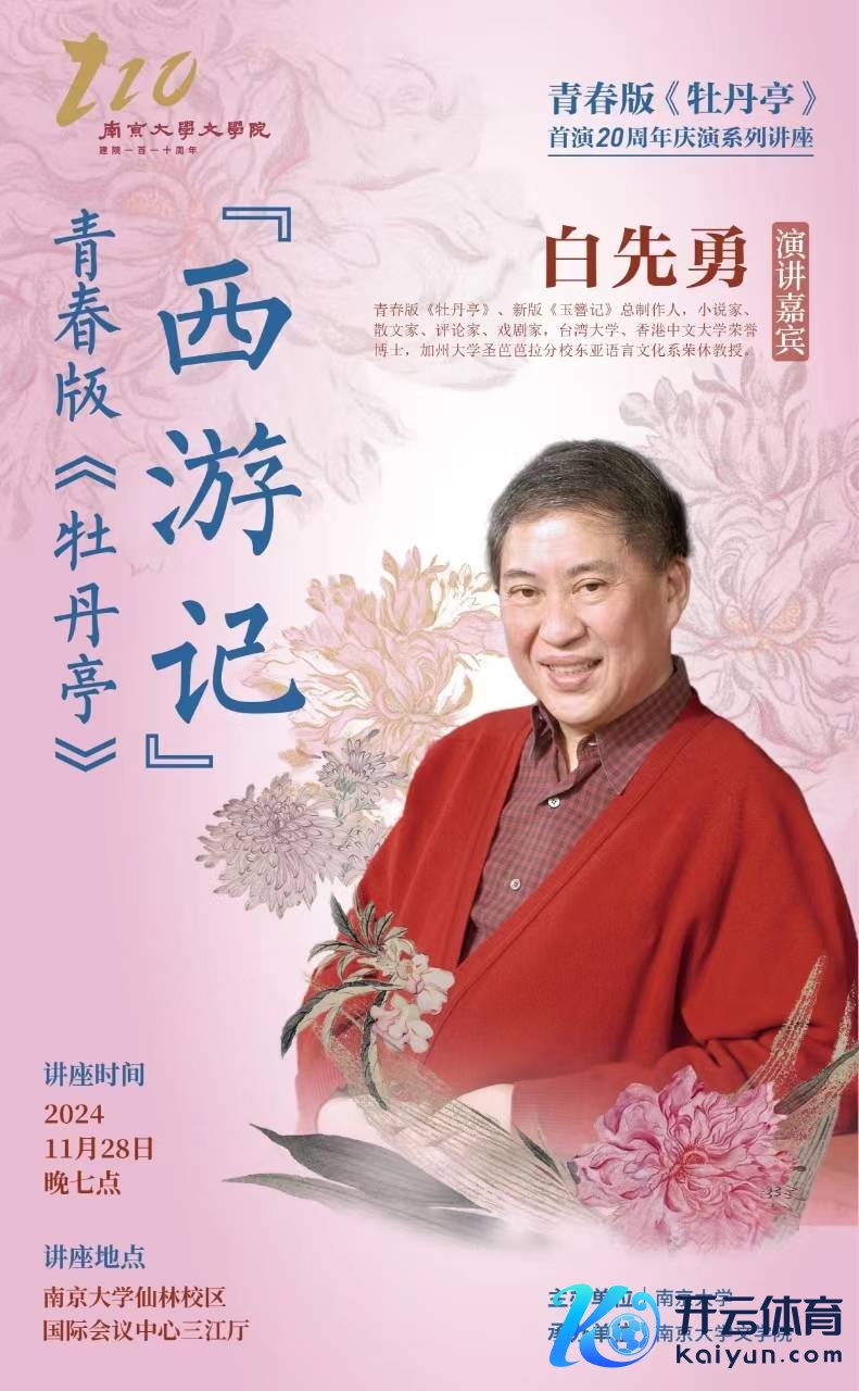 四百年《牡丹亭》,二十年芳华版。2004年,由白先勇担任总制作主说念主、艺术总监,与江苏省苏州昆剧院共同打造的芳华版《牡丹亭》首演,激发了不小的颠簸。时值芳华版《牡丹亭》首演二十周年之际,11月29日至12月1日,全本芳华版《牡丹亭》原班东说念主马纪念,将在南京荔枝大剧院连演三天,白先勇也将于11月28日晚来到南京大学,以“西纪行”为主题开展芳华版《牡丹亭》首演20周年典礼系列讲座。11月5日,白先勇接纳了扬子晚报|紫牛新闻的采访,提前与南京的不雅众们问候。