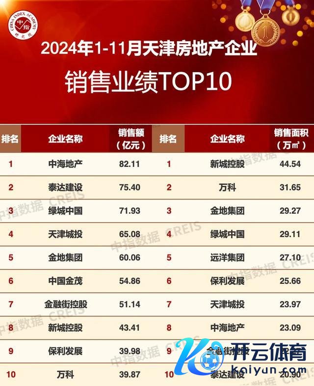 相配阐扬:房地产企业销售数据以2024年1月1日-11月30日历间商品房公约销售额为统计口径,主要依据中指数据CREIS在天津的销售监测数据;本讲演仅供参考,课题组不合使用讲演偏执内容所激勉的任何奏凯或曲折失掉承担包袱。
