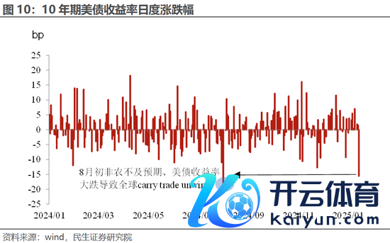 从微不雅上,10年好意思债收益率单日的跌幅终点夸张,险些和2024年8月初相当。而那时因为非农职业不足预期,带来套断来去(carry trade)大界限爆仓,使得好意思股和以日股为代表的非好意思股市均出现大跌。