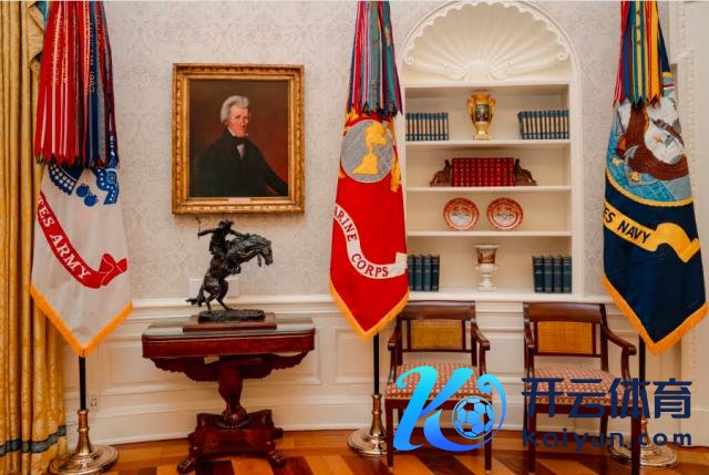 在往届总统的卵形办公室里,总统经受吊挂哪些好意思国历史向前驱们的画像,通常也能抒发和体现出时任总统的政事诉求。而特朗普从头装修后的卵形办公室里,包括了一幅清新的安德鲁 · 杰克逊 ( 好意思国第七任总统 ) 的油画,这是特朗普赴任日对这间备受珍惜的办公空间进行大变嫌的一部分。