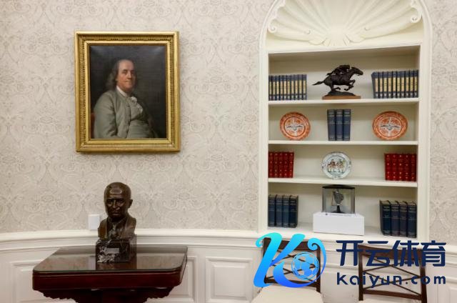 其他肖像方面,拜登四年前曾将本杰明 · 富兰克林的肖像带入卵形办公室,以标明他对科学发展的善良。而特朗普则保留了它。富兰克林画像下方刻下还摆放着杜鲁门的半身像。