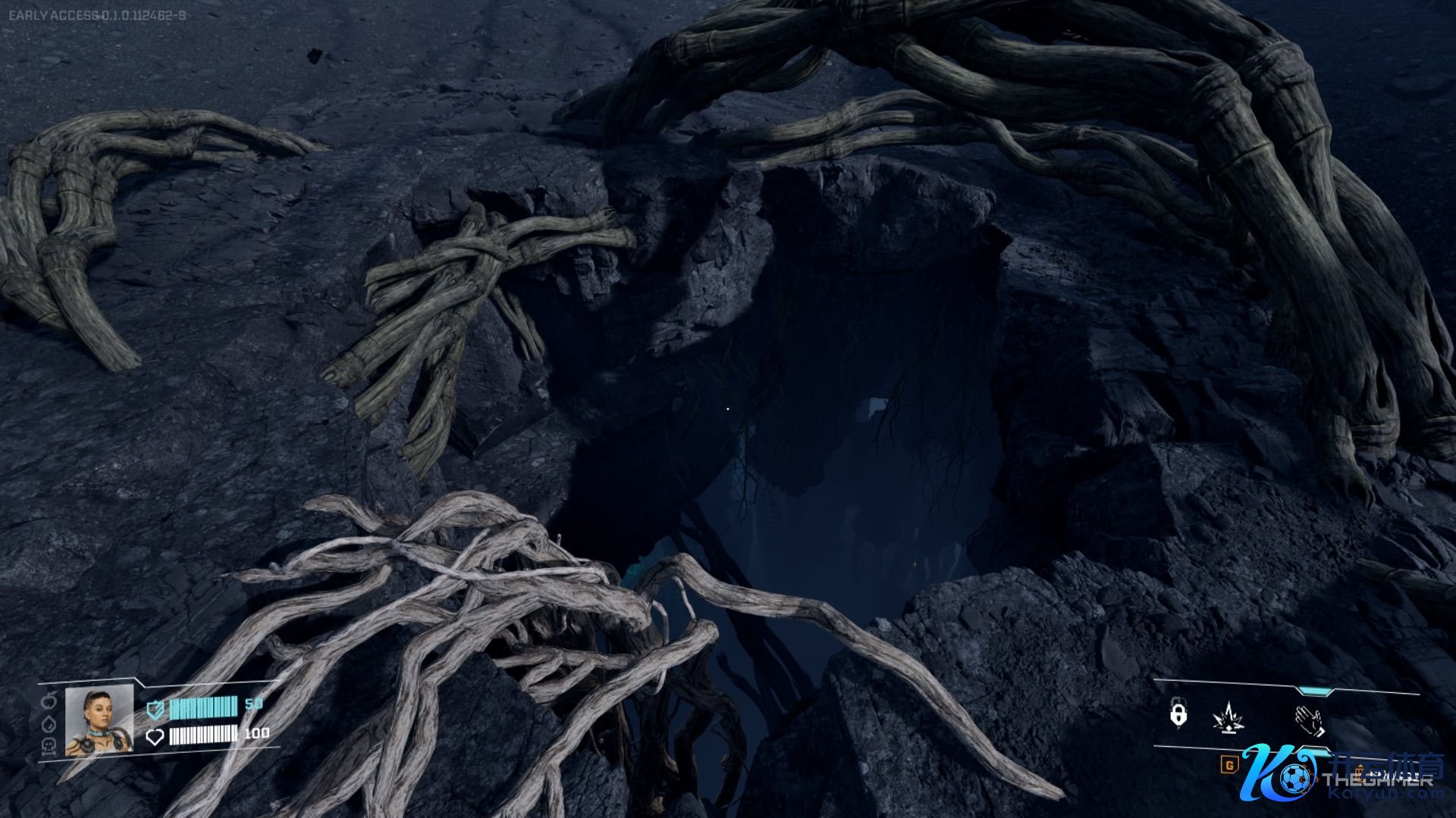 这些藤蔓阴私着资源丰富的地下洞穴,但它们仅在断裂波(rupture wave)事后的短时安分开启,随后藤蔓会再次将其阴私。你碰到的第一个洞穴可能位于轨谈着陆器场址北侧的钙矿区隔邻,大略是当你向有毒绿色生物群落转移时,位于轨谈器南侧。
