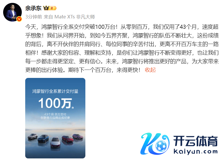 余承东:鸿蒙智行全系请托冲突100万台余承东:鸿蒙智行全系请托冲突100万台