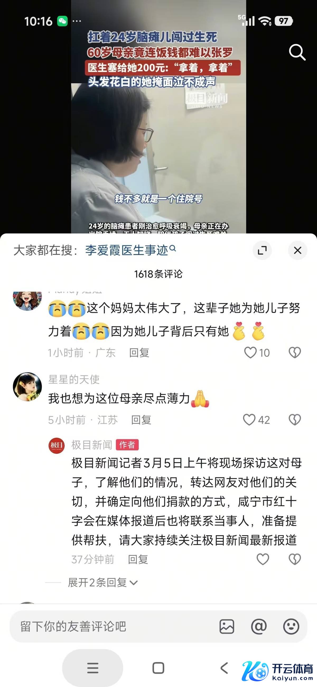 此外,咸宁市中医病院示意,正在组织医护东谈主员向这春联母捐钱。同期,咸宁市红十字会称,关注到这春联母的情况,正在积极跟进体育游戏app平台,以提供匡助。